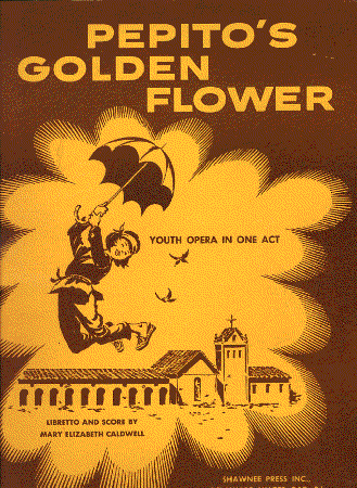 Pepito's Golden Flower unfolds against the authentic historical background of old Mission Santa Inez in California, shortly after the disastrous earthquake of 1812, which damaged the Mission and destroyed the belfry tower and bells. The curtain rises on a lively ball game with the boys led by Pepito, a young orphaned Indian lad, teasing the girls led by Rosita, a Spanish girl of the same age, daughter of a sea captain, making her home at the Mission since the death of her mother several years before. The Padre calls them to midday prayers, which are constantly interrupted by the mischievous doings of Pepito until finally the Padre dismisses everyone in disgust and scolds Pepito soundly. Then he confides to Pepito and Rosita that he is very sad because of the damage to the Mission and the loss of the bells and asks them to try to be good children. After he goes inside, Rosita also scolds Pepito; he insists that he is naughty because he has no bells to ring and nothing to occupy his time. In a burst of enthusiasm, he describes the way he rings the bells and how they are named in the gay "Bell Song" duet with Rosita. She then tells him of the treasure hidden somewhere near the Mission which, if they could find it, would enable them to buy new bells to surprise the Padre. Pepito is all excited and confident that he can find the treasure.